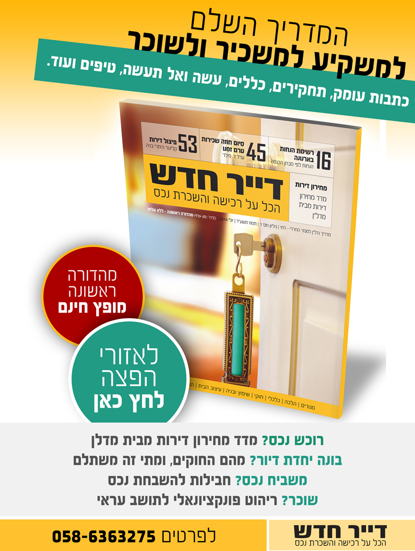 מגזין דייר חדש זה מגזין מקצועי חרדי בנושאים הקשורים להשכרת ורכישת נכסים.