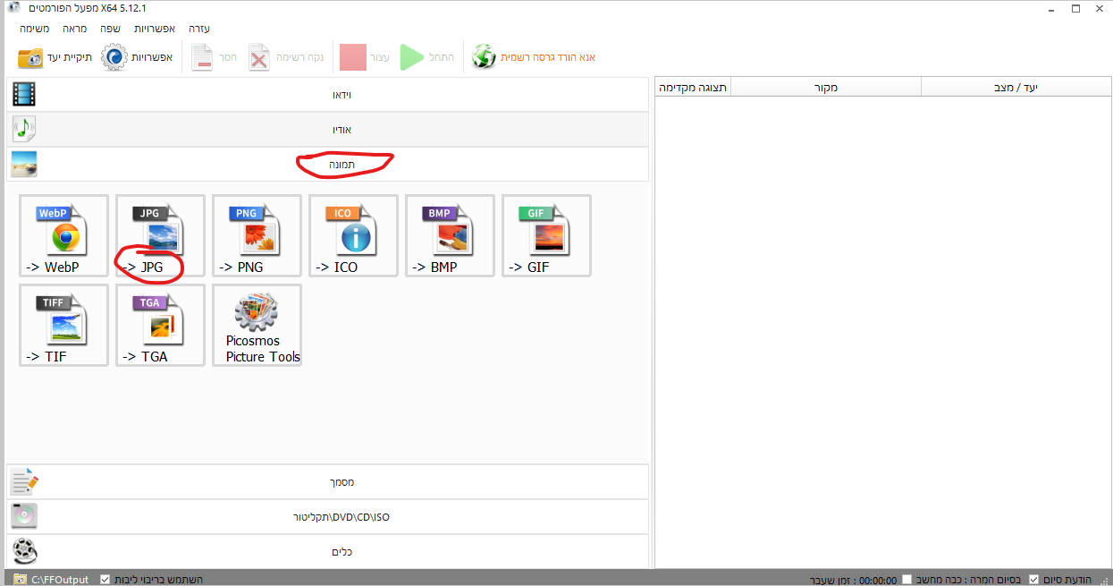 על תמונה, ואז לאיזה סוג את רוצה להמיר