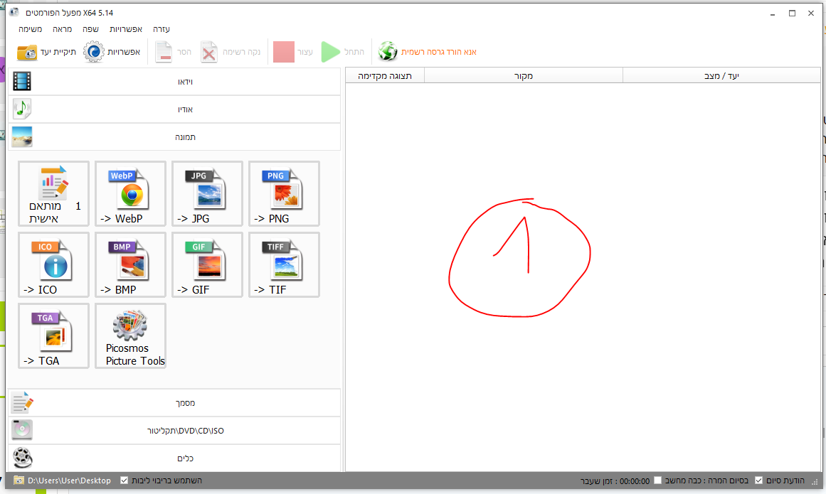 ואז במסך הראשי תלחצי על התחל המרה (חץ ירוק כזה)