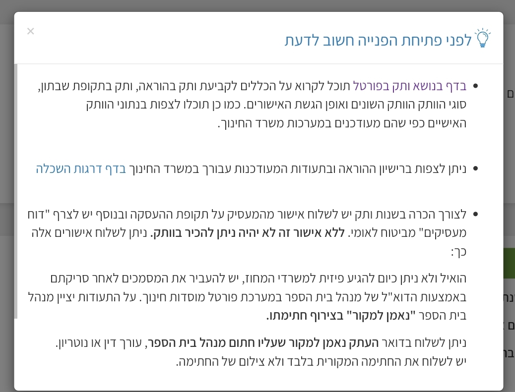 המנהלת יכולה דרך פורטל מוסדות חינוך