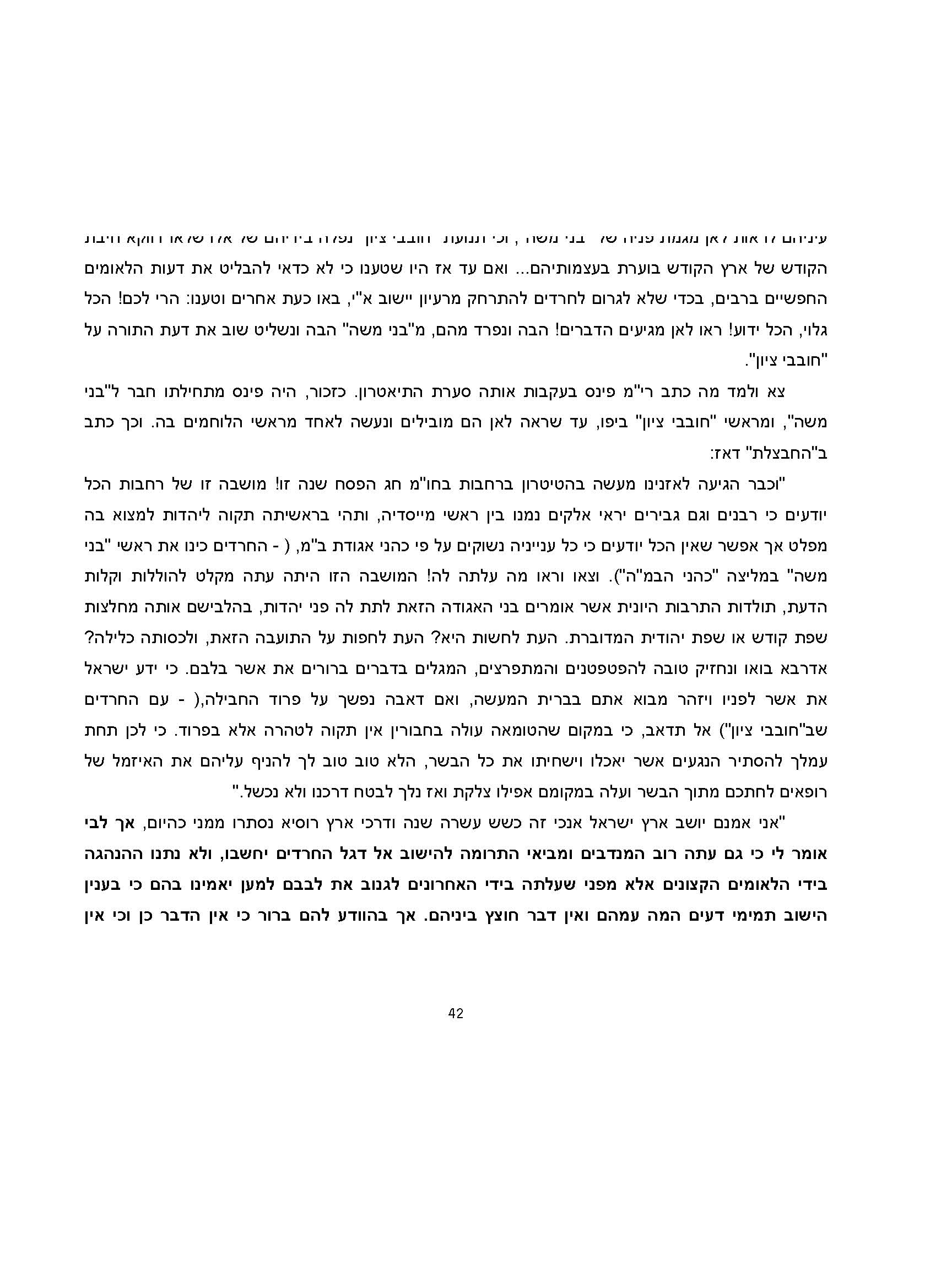 מכאן ראינו, שעצם חידוש השפה ראוה אף הקנאים הגדולים ביותר כמרן הרי"ח זוננפלד כדבר לגיטימי ואף רצוי. אולם ההתנגדות היתה אך על מטרת בן יהודה וחבר מרעיו שלא בטובת השפה שהיא לנו למורשה חפצו, אלא כל מטרתם היתה להכין תוצר שישמש את הישראליות העתידית, זו שתמיר את רוחה על ידי זריקת יהדותה לעבר השיחים.