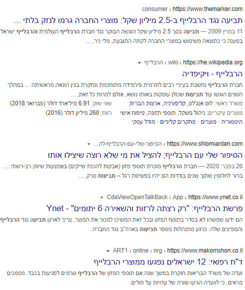 תוצאות ראשונות לתביעות הרבלייף -