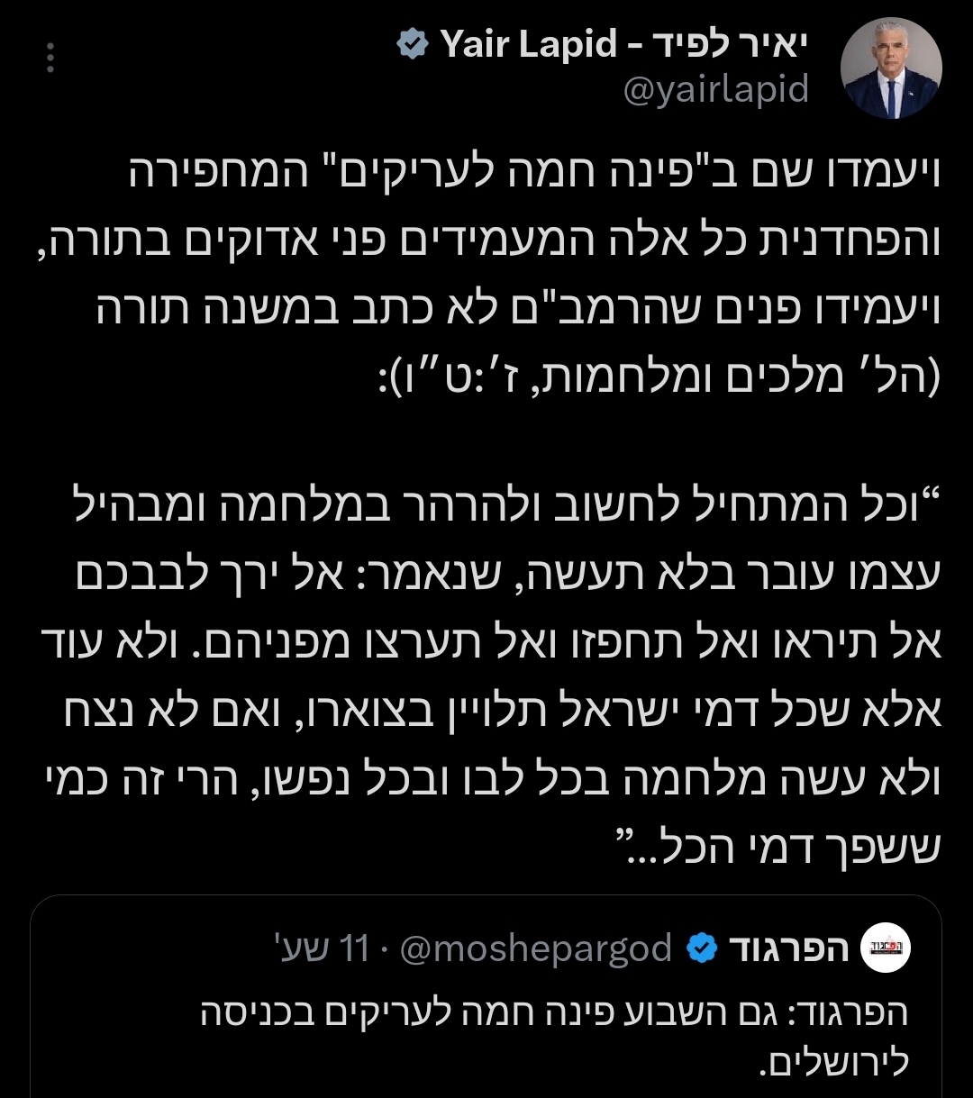 גם אני מצטרף לקריאתו(...) להתאחד יחד, כולנו בני איש אחד אנחנו, ועל כולנו בלי יוצא מן הכלל רוצים להשית גזירות מאוד קשות.