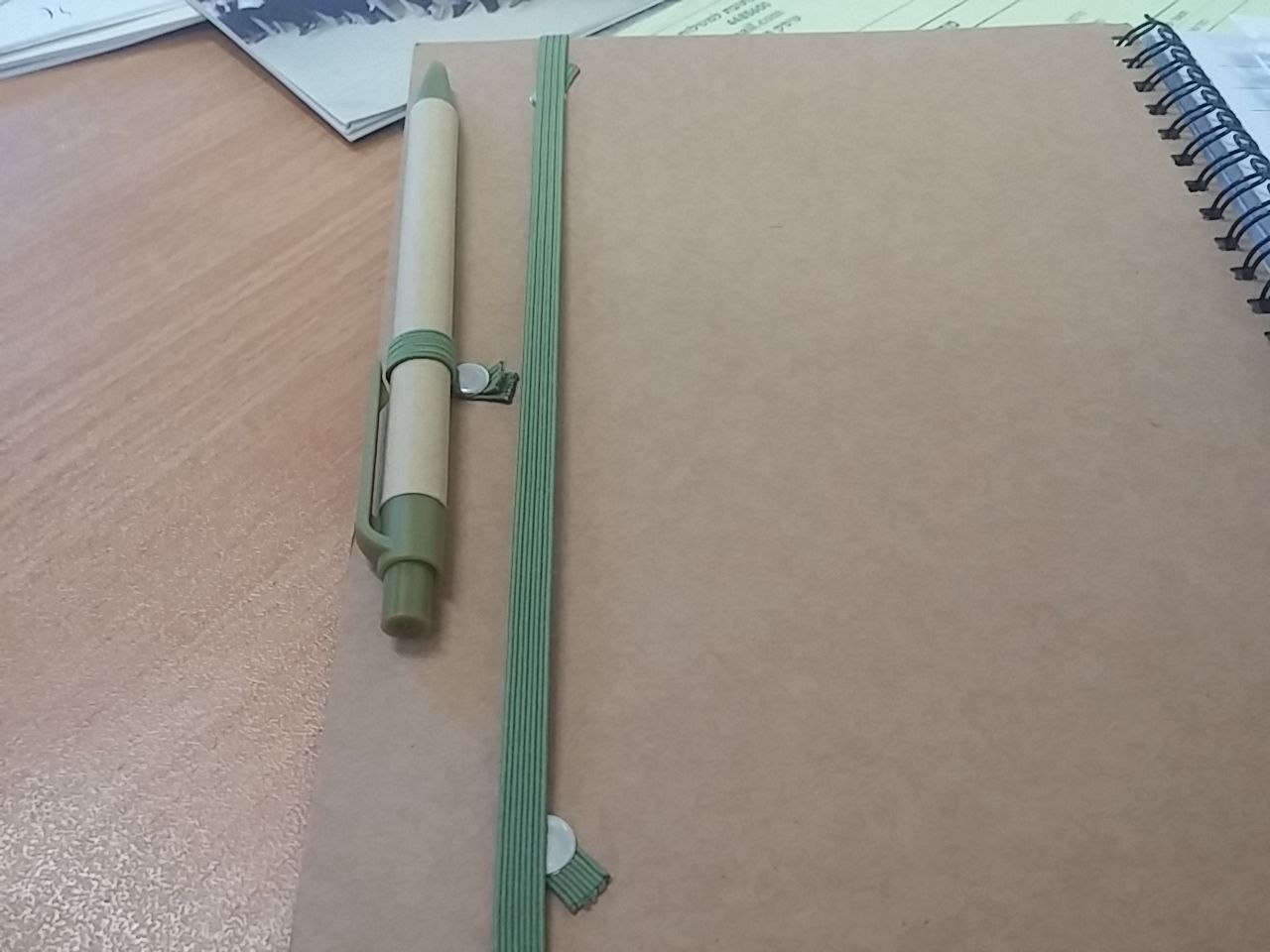 וגם גימורים של גומי שמחזיק את הפנקס סגור וגומי לעט