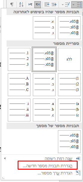 ובאפשרויות לסמן על עיצוב תבליטים ומספור