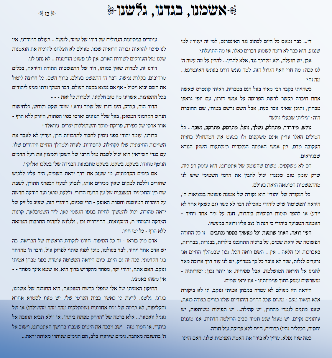 אף אחד לא מדבר כאן עם חילונים ועם כאלו שצריכים להתיפייף בעיניהם.