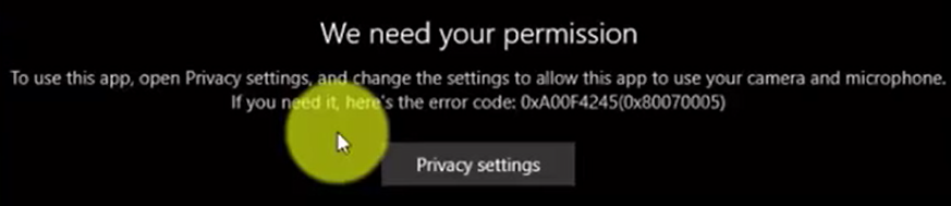 אני מנסה להדליק את המצלמה בלפ-טופ, אך האפליקצייה של ווינדוס 10, כותבת את ההודעה הבאה: