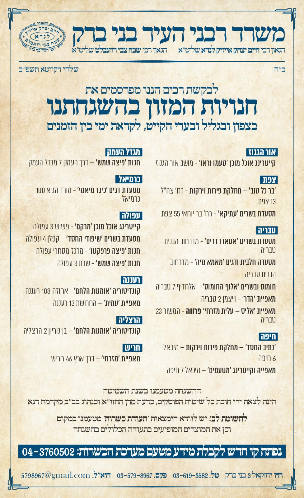 מאפיית ברכת משה - הנשיא וייצמן 17 עפולה - בהכשר העדה החרדית
