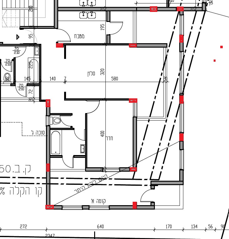 בהנחה שהשרטוט מדויק מבחינת העמודים מה שלא בטוח בכלל --- העמודים המסומנים באדום בסקיצה מצוב הם עמודים