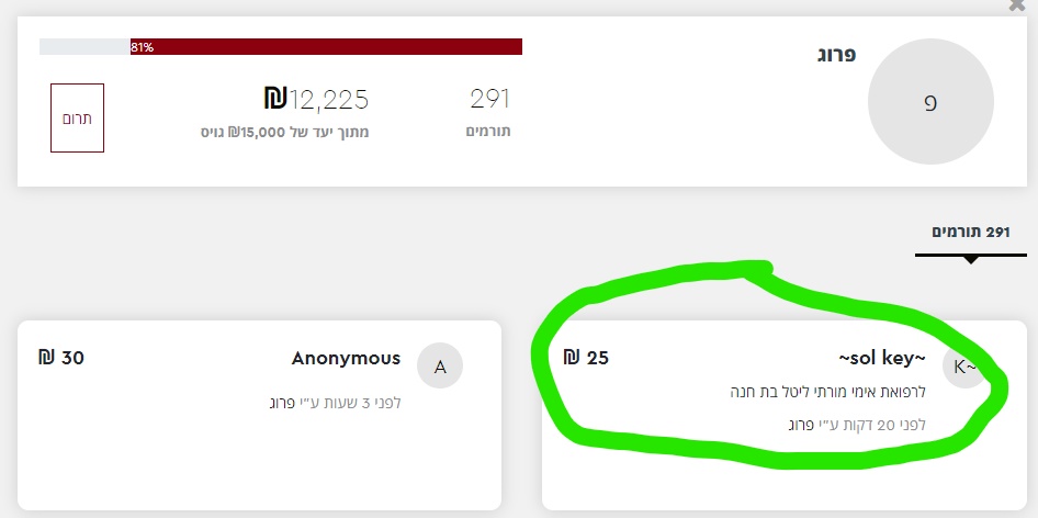 השתמש המיוחד שתרם אחר 3 שעות שלא זכו שיהיה תרומות