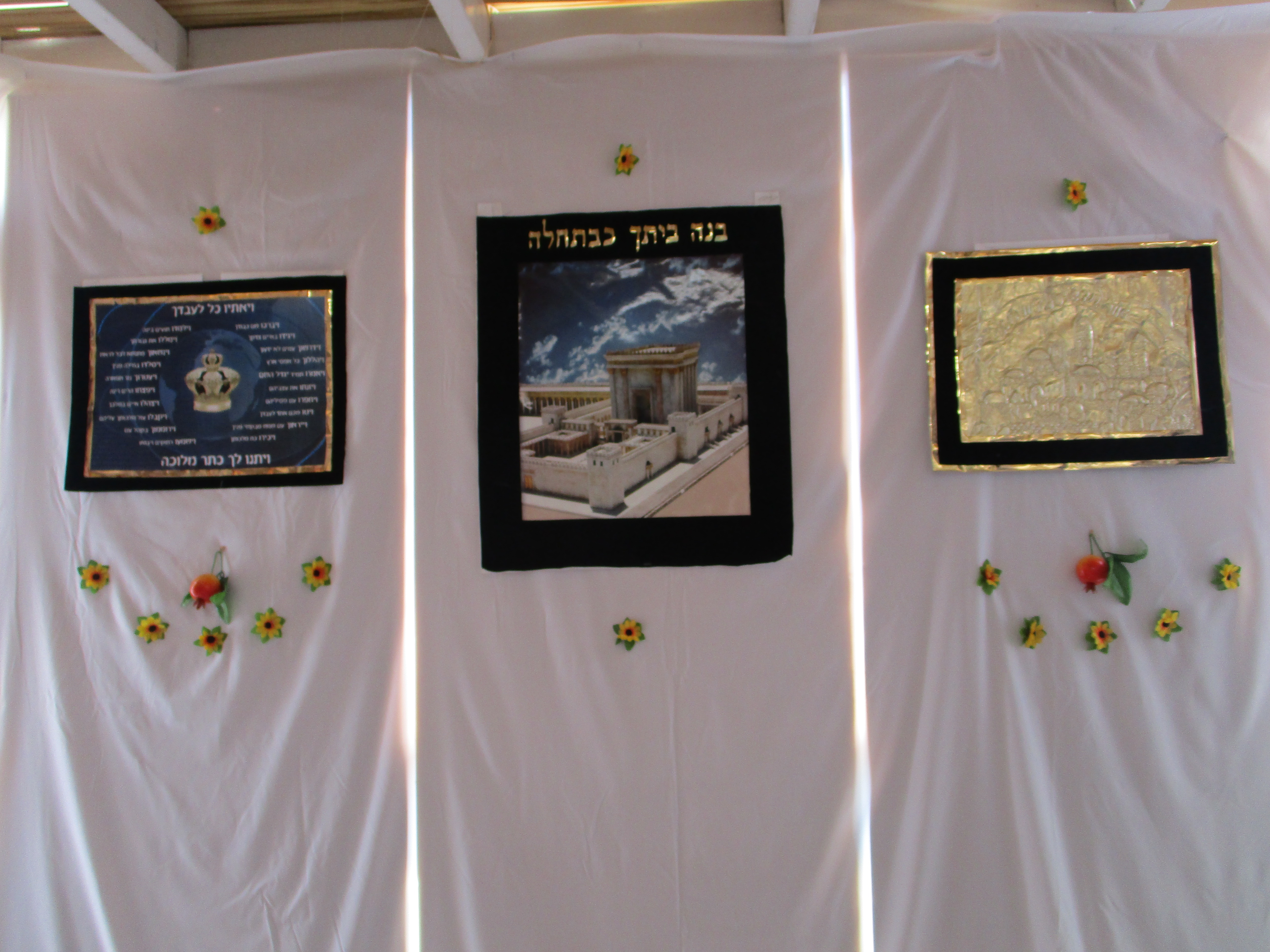 ובמובן של היום - סוכה יפה הינה עם בד יפה ומשובח לאו דווקא לבן, אולי ורדרד אולי צבע אחר משי וכדו', ובמרכז תמונה יפה וגדולה אחת, ובצד השני' עוד תמונה של 'מתנאל' ודומיו, פה עוד טס יפה וכאן עוד משהו יפה, אבל דברים איכותיים ויקרים ולא דוורא בעומס של דברים.