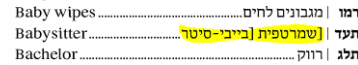 אבל בין האנגלית לעברית צריך להיות נקודות של טאב