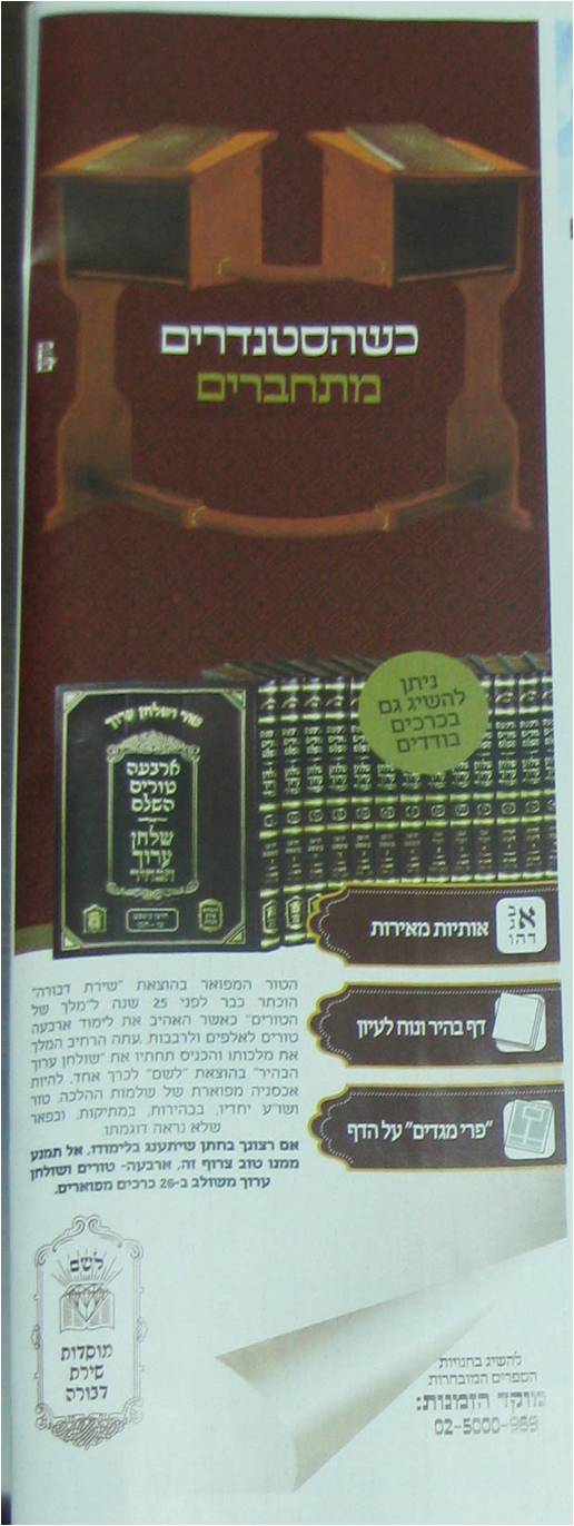 [יתכן שהיו עושים בשכל אילו היו יותר מסבירים, כי לא רק בני תורה קונים את זה, אלא גם מחותנים והורים וכו'.]