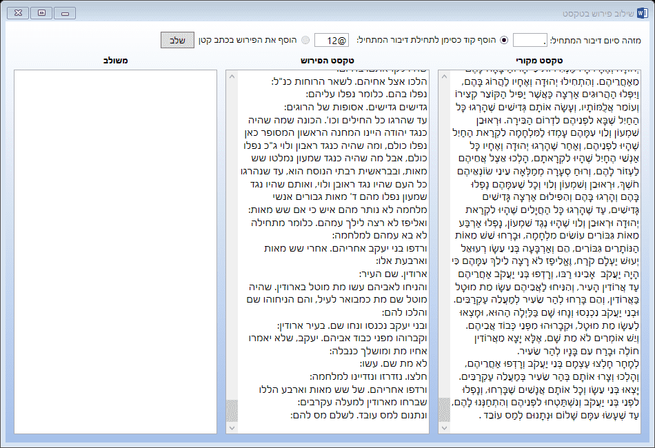 יש לי טקסט עם פירוש