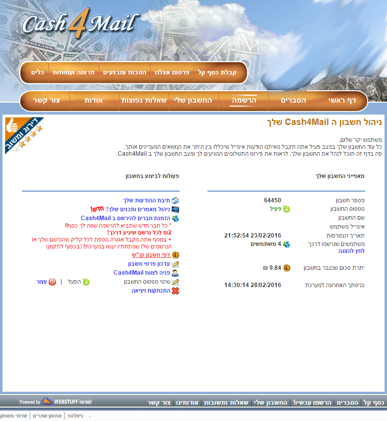בשום אופן לא אמליץ על אתר שקשה לקבל בו כסף, אני פשוט לא ארשום. או שעד שלא אראה אמינות לא אמליץ.