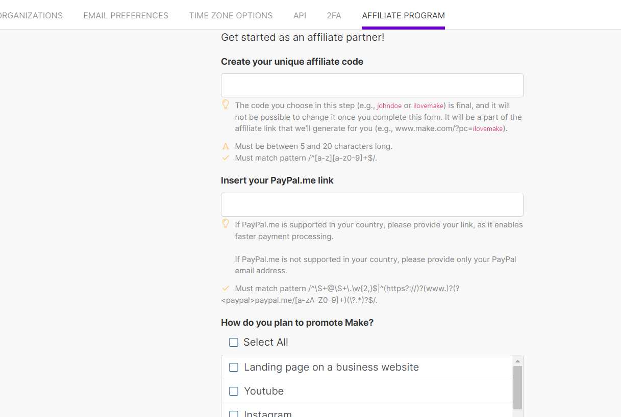 Make אפשר הסבר על קישור תוכנית השותפים שלי<?