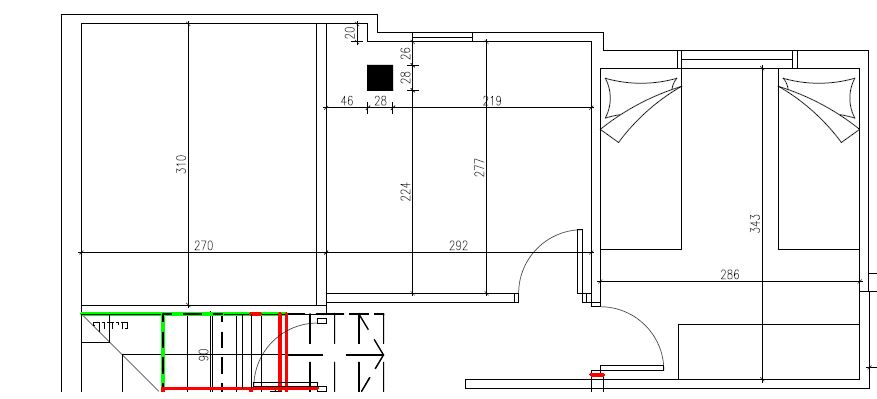 המלבן הירוק יכול להיות נישה בחדר הסמוך או בחדר הכביסה בשינוי מקום המכונות.