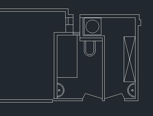 אולי כבר ניתן ליישר את הקיר בין האמבטיה לחדר הכביסה ולמקם אותו בקו האמצע של 2 הקירות המדורגים כרגע, זה יפתור את בעית חדר הכביסה ואת האפשרות למקם אסלה על הקיר השמאלי.