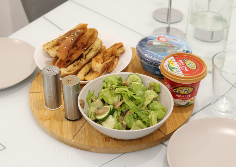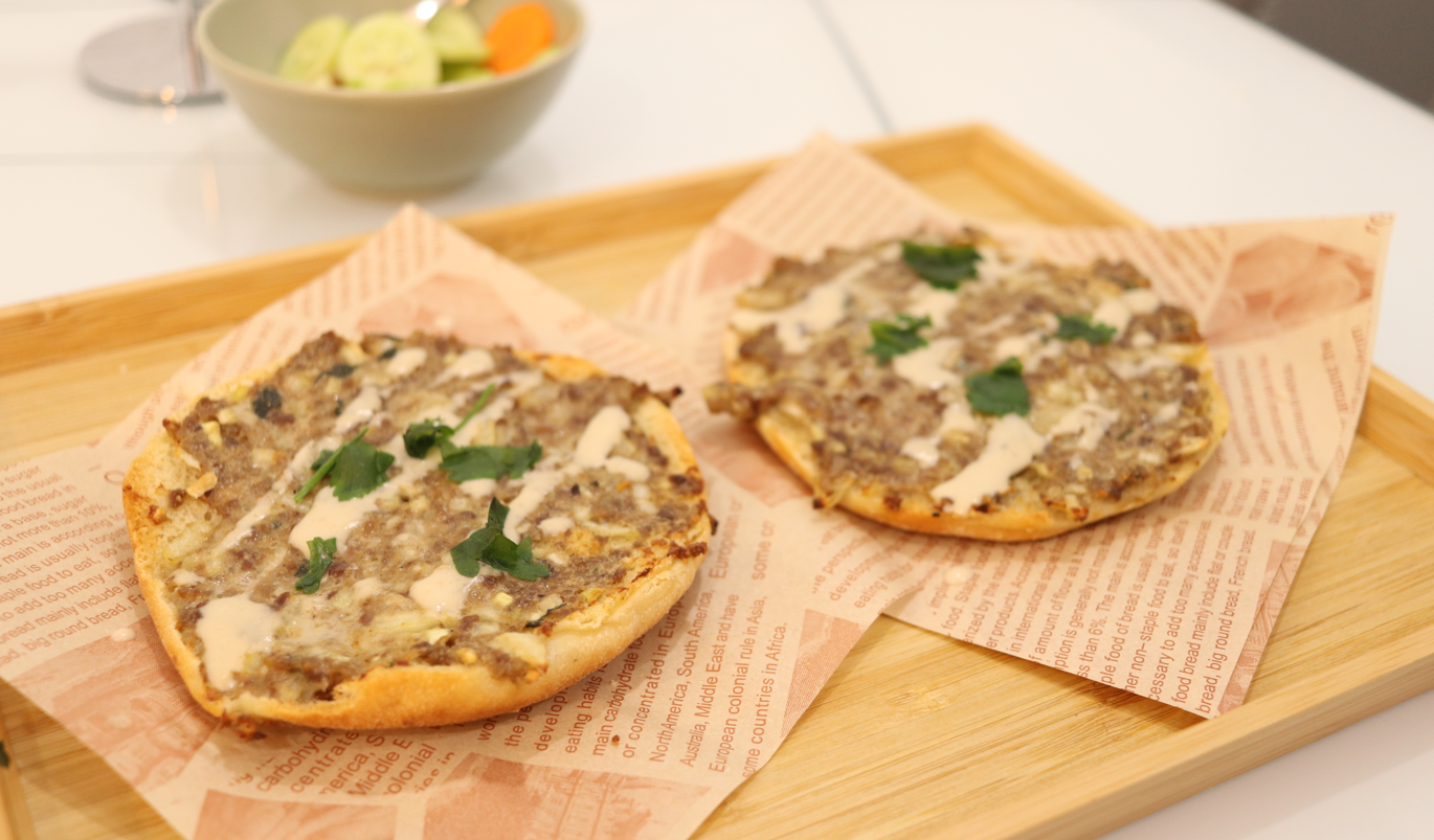 -מורחים על כל פיתה חצויה כף מהתערובת ומשטחים באופן אחיד בצד אחד של הפיתה.