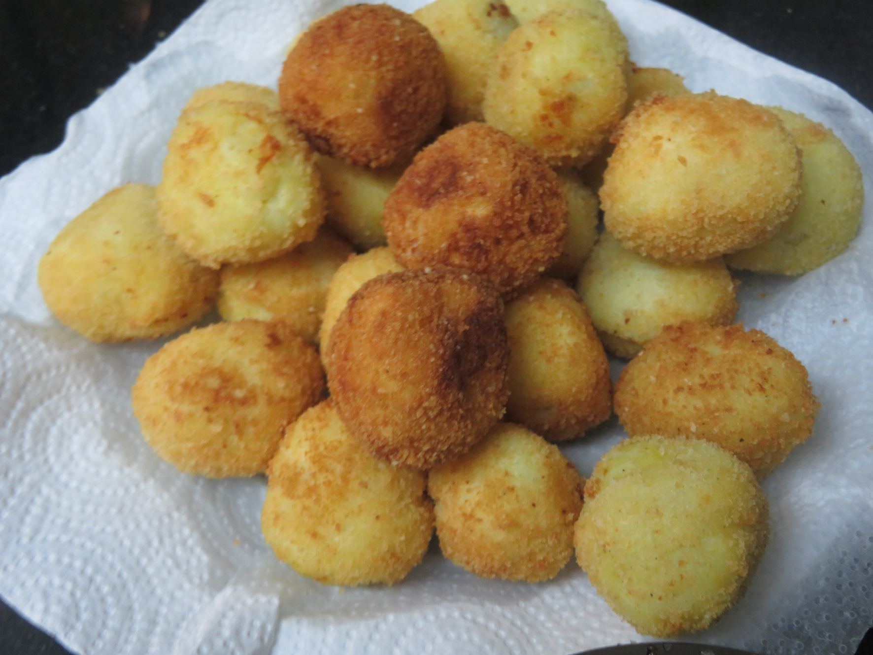 נטבול את כדורי הפירה בקערת פירורי הלחם ונטגן בשמן עמוק חם עד להזהבה יפה.