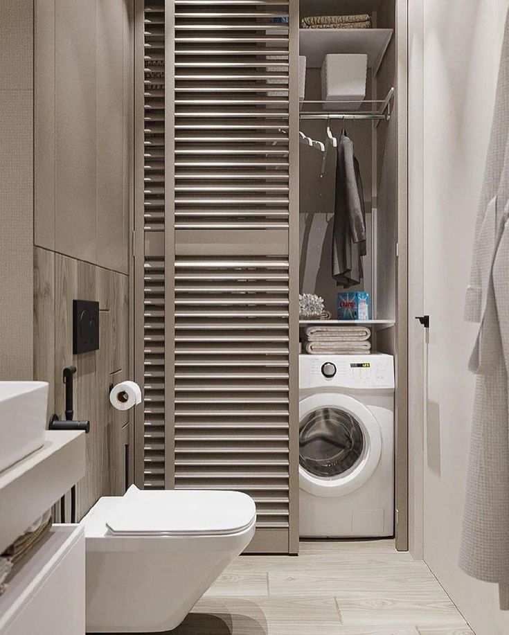 ישנה אופציה נוספת להכניס את כל הכביסה לתוך חדר האמבטיה, אבל יהיה מקום רק לארון כביסה קטן יחסית.