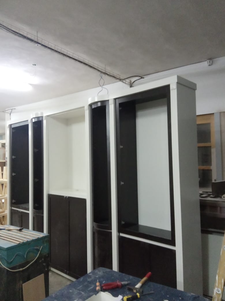 ייצרתי ארון לסלון רוחב 3.80 שילוב של לבן עם ונגה לצערי היתה לי טעות במידות של החלוקה הפנימית
