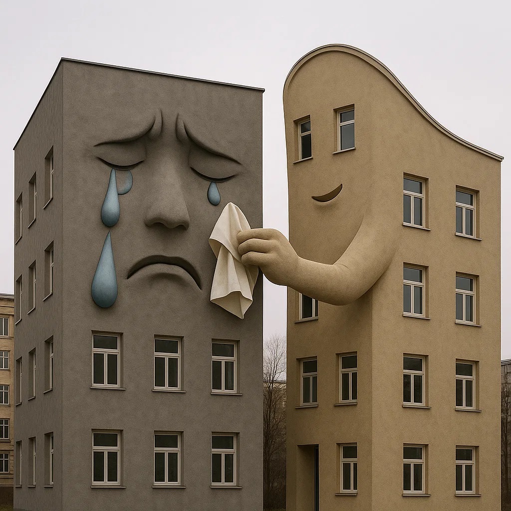 אני גם התלבטתי בזה והכרעתי לבסוף שלמעשה כיון שהכל זה חלק מהבנין זה נחשב שצורת הבנין מביעה רגש, זה לא שסתם הדבקתי עיצוב על בנין, אלא זה חלק מהעיצוב של הבנין.אני די מתלבט האם זה עומד בכללי האתגר , מטרת האתגר היא צורת הבניין שתביע את הרגש ולא רגש שמגיע מבניין , אני מקווה שההבדל מספיק מודגש אני ישאיר את התמונה כי אולי לא הייתי מספיק ברור
