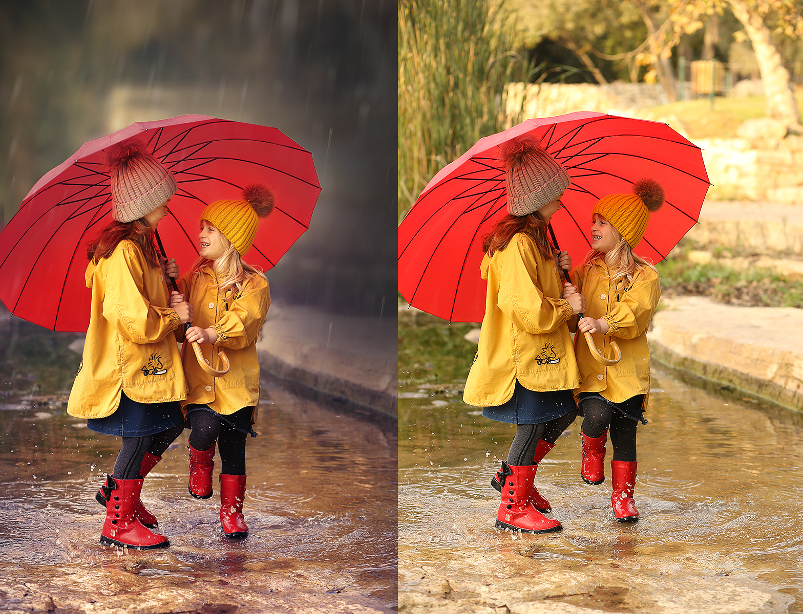 שהתמונה נפתחה בפוטושופ בCAMERA REW נכנסתי לכרטיסיה בצד ימין שמצויר שלוש קווים ובחרתי את הסגנון שהתאים, סידרתי תאורה טיפה, חיממתי הוספתי צבעים ולחצתי OPEN IMAG עכשיו מחקתי דברים מיותרים, סידרתי קומפוזיציה. (שמתם לב שהגדלתי את שטח החציר ועשיתי את הילדה קטנה יותר.
