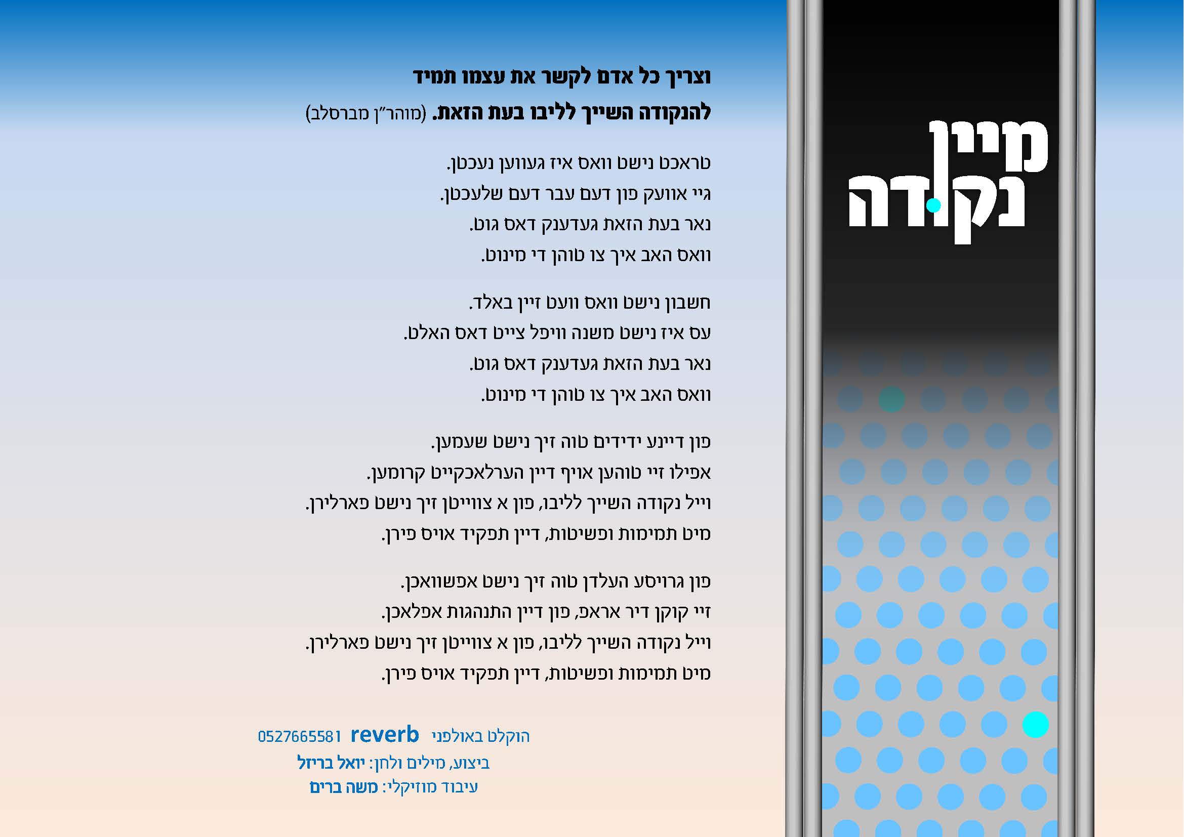 נכתב ע"י ברכהלה;2461075:וכן אם אפשר להעלות את הקליפ "קינדרכניץ".