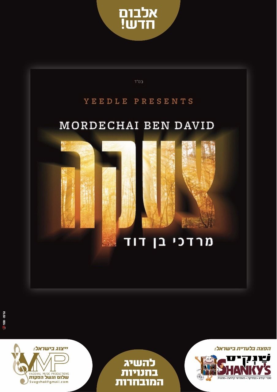 *"צעקה!" - הנה זה כאן.* קבלו את הטריילר הרשמי של האלבום. 4 שנים לאחר *"כיסופין"*- אלבומו האחרון של גדול הזמר החסידי *מרדכי בן דוד,* נוחת סוף סוף ביום ראשון הקרוב אלבומו החדש *"צעקה"* על מדפי חנויות. האלבום המושקע מכיל 13 לחנים ועיבודים מדהימים של מיטב הכשרונות במוזיקה החסידית, ביניהם ניתן למצוא את הצמד *אלי קליין & ואיצי ברי, מונה רוזנבלום, אלי לישנסקי, מוישי רוט, עמי כהן, יואלי דיקמן, ברוך שלום בלזובסקי, אלי לאופר, מקהלת שירה, מקהלת בעלי המנגנים ועוד..* הפקת האלבום: *יידל ורדיגר.* הפצה בארה"ב: *אדרת.* הפצה בישראל: *שנקיס.* ייצוג בישראל: *"VMP שלום וגשל הפקות".* |