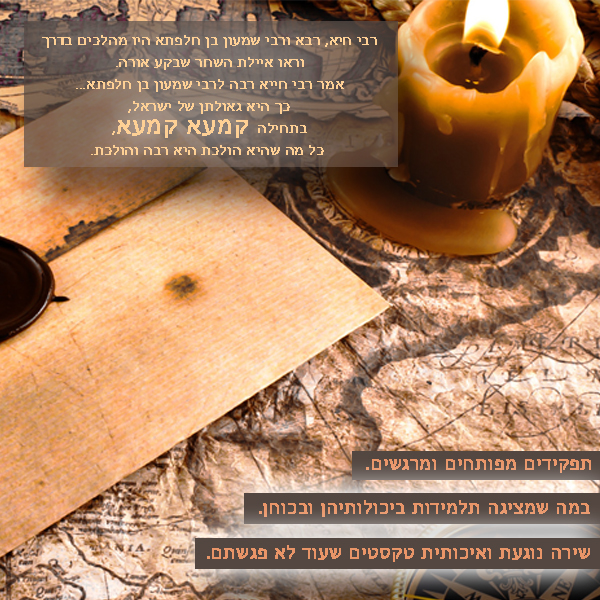 זהו סיפור קטן, כמעט שכוח, שממדיו מאירים את "המעשה הקטן" ומציבים אותו בגודלו הטבעי – קמעה קמעה – הוא מחיש את הגאולה.