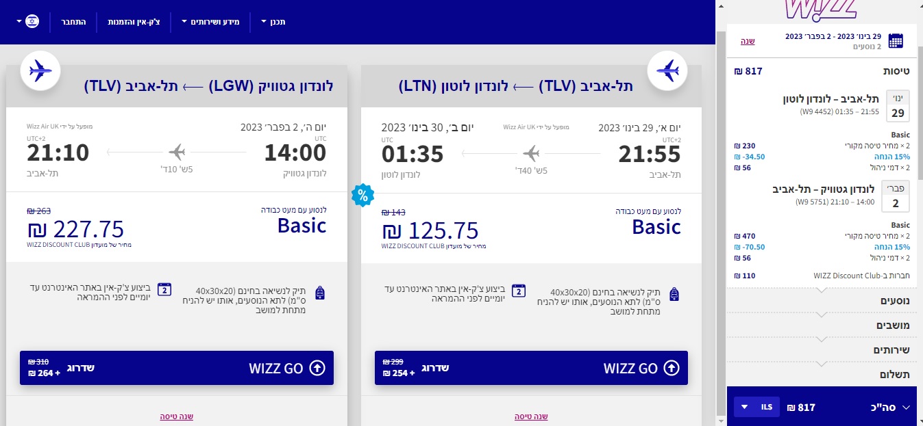 • וויז אייר – טרם פורסמו מבצעי בלאק פריידי 2022.