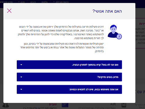 בוויזאייר הוחלט שאני בוט האם יש לכך פתרון