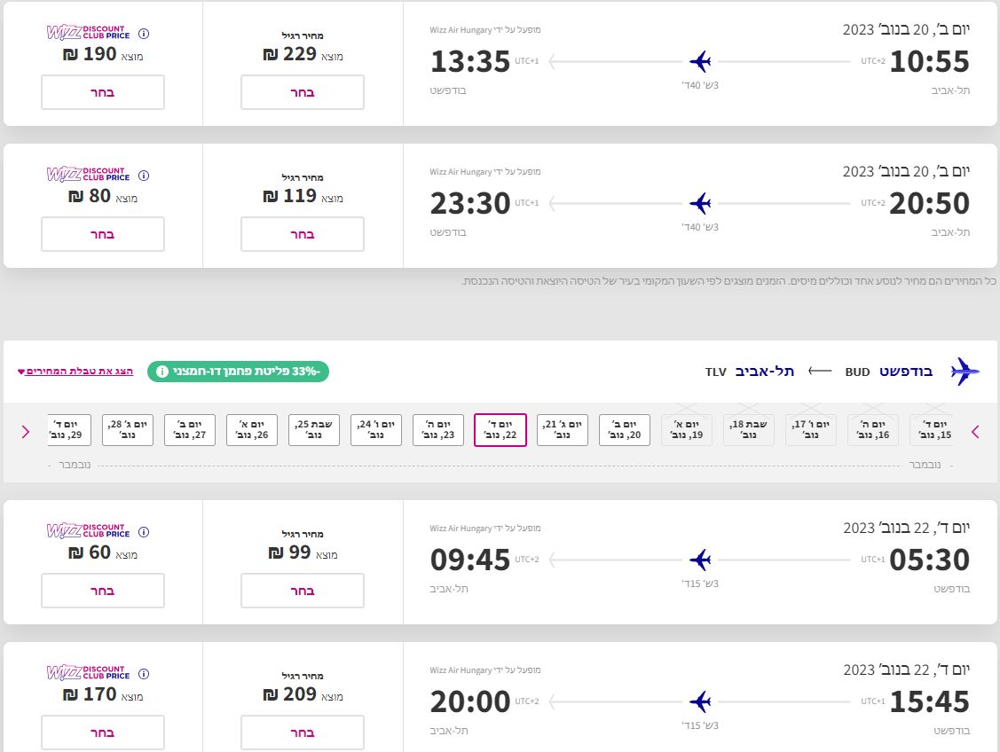החל מ1120 שחולבודפשט הלוך חזור מיום ראשון הבא או שני הבא עד יום רביעי ?