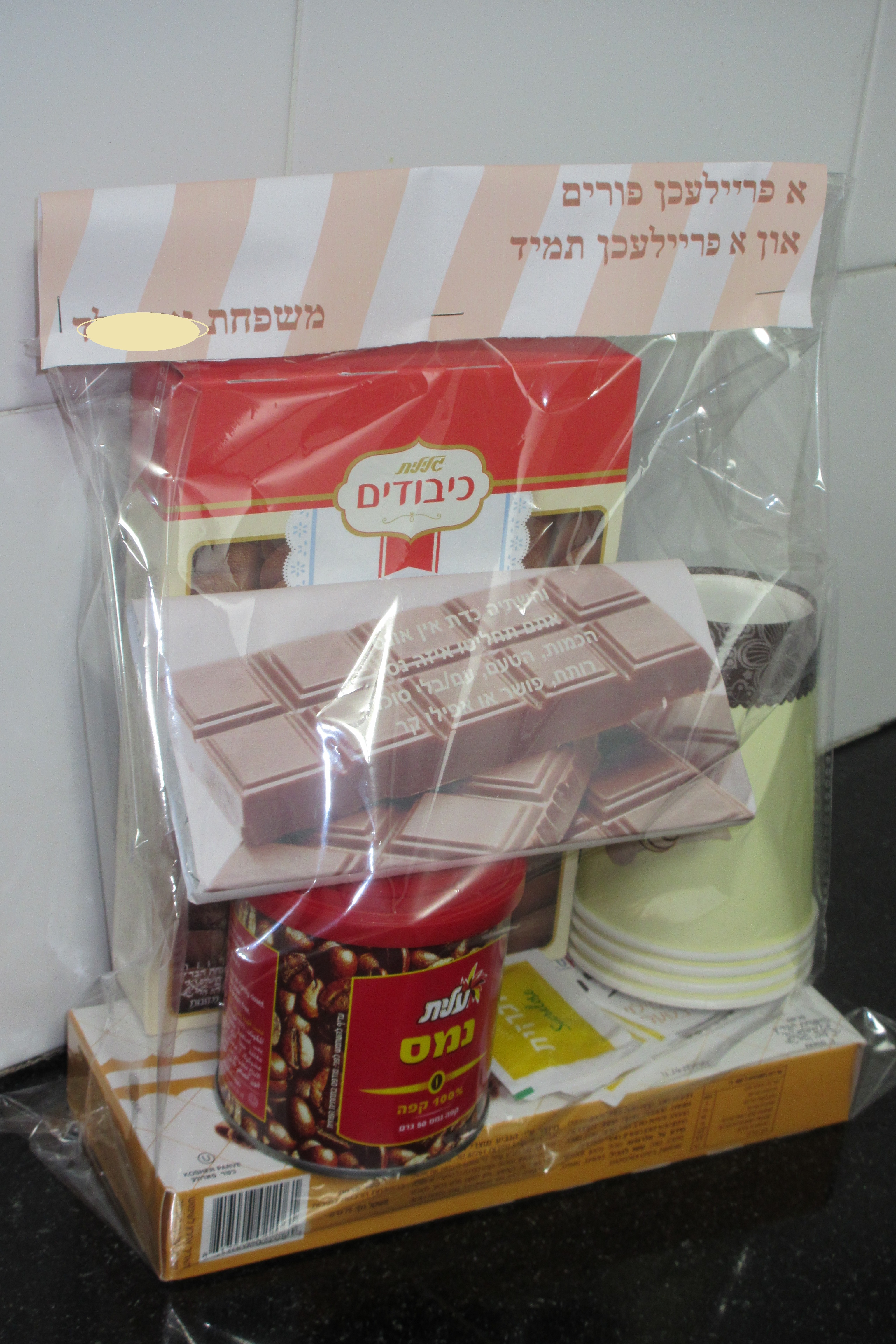 (יש לציין- אני זו"צ בקושי מכירה את השכנות שלי. ככה שהמשלוח מנות הנ"ל היה רק לאחיות, גיסות, חברה אחת, ולהורים- במהדורה מוגדלת... ככה שלדעתי לכולם זה היה בסדר שזה מאפה בית...)