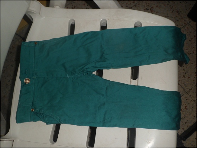 2. מכנס לילד בצבע טורקיז (כמו מנטה כהה) מבריק, מתאים לשבת או ליום חול.