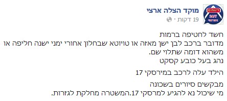 אישה מבוגרת ראתה ילד נכנס למכונית של ערבים