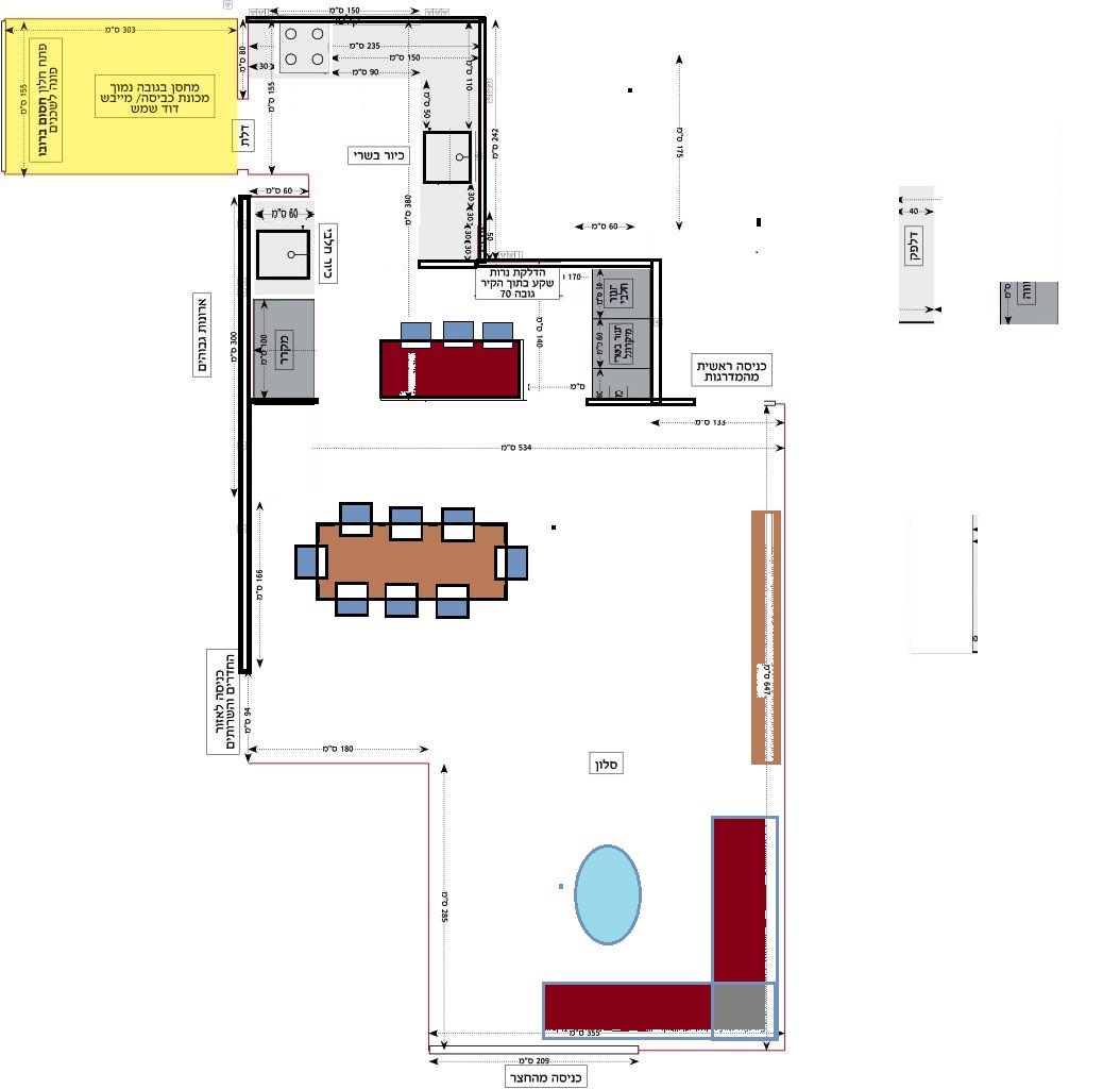 ניתן לצמצם את 2 התנורים שיהיו זה על זה+ מזווה יותר גדול +מקרר