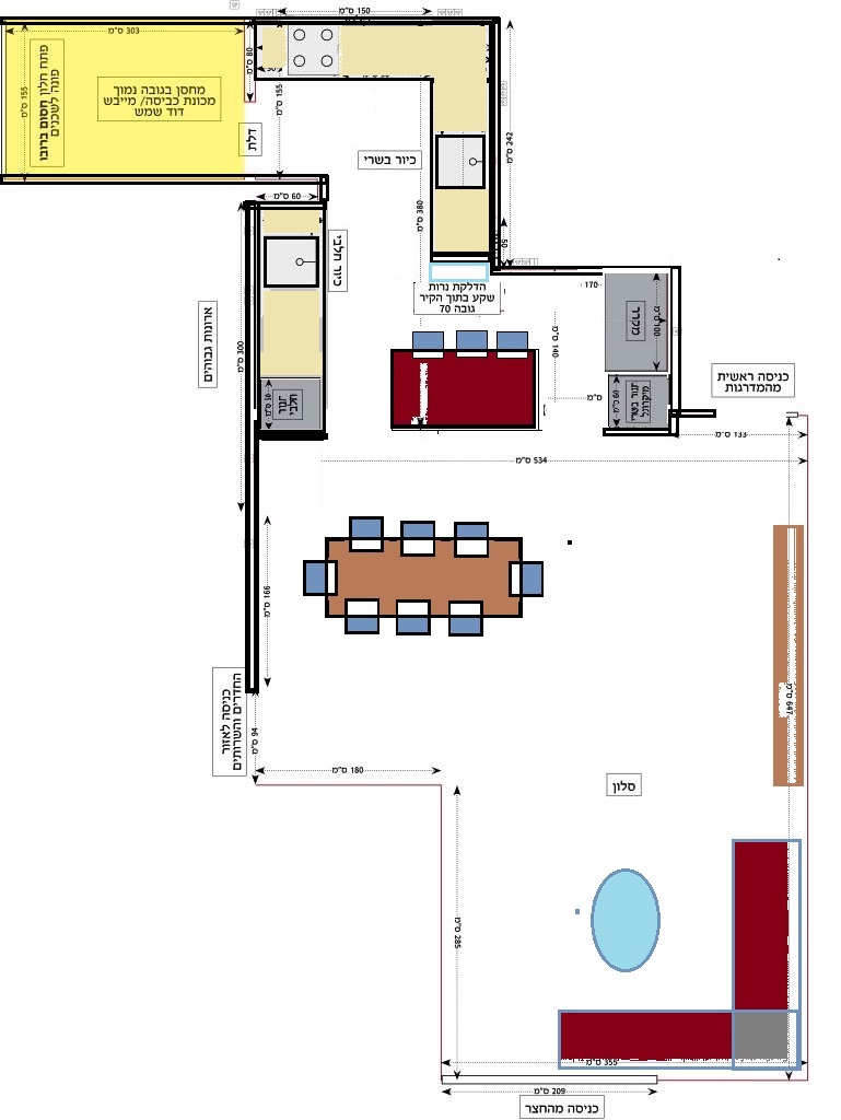 ממליצה מאד לשמור על קו ישר בכניסה למטבח (כרגע צד שמאל ארוך יותר מימין)