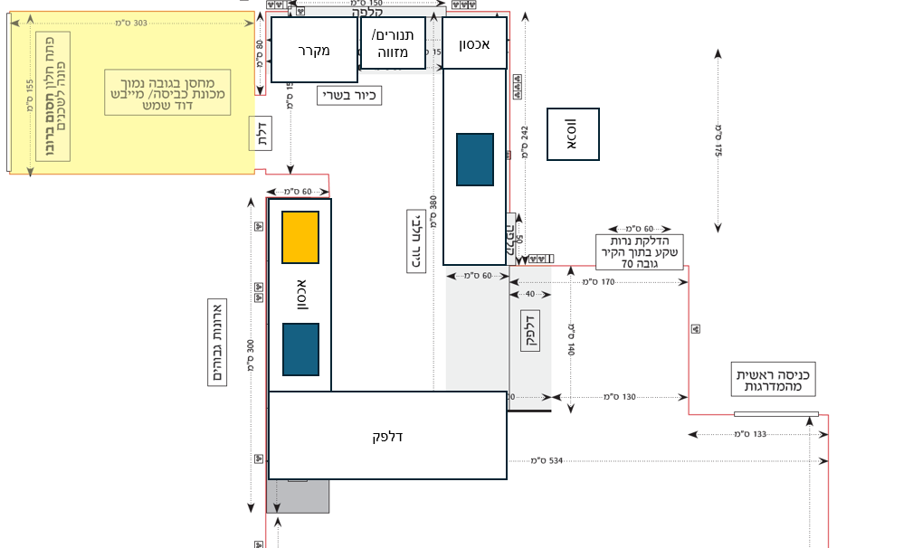 בהמשך אותו קיר מתוכנן ארון לאחסון מעילים ותיקים.