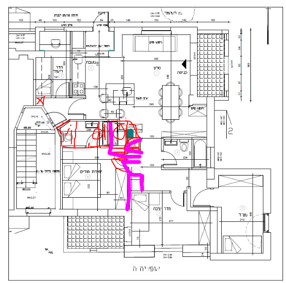 הממד באמת לא היה משורטט נכון בהתחלה ותיקנתי אותו, אני למעשה מתעסקת רק עם שאר הדירה ותכנון הממד לא קשור אלי מלבד החלק שנכנס לבית שאני צריכה לתכנן סביבו.