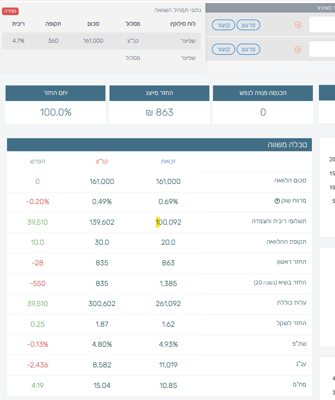 אם תסתכל שם על "תוספת ריבית להלוואה" תראה ש: