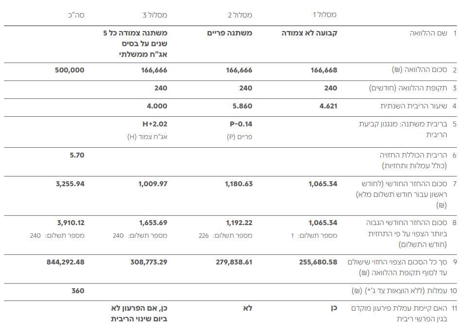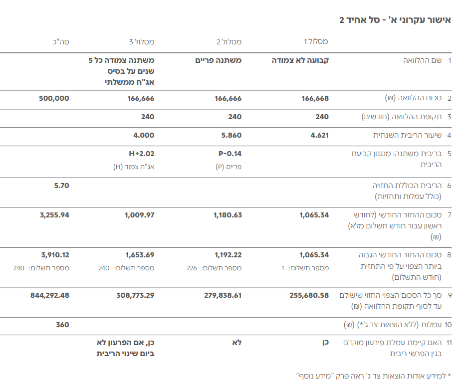 בעמוד הראשון שמוצג את 3 המסלולים יש עמודה סל מוצע - ורשום שם לא קיים