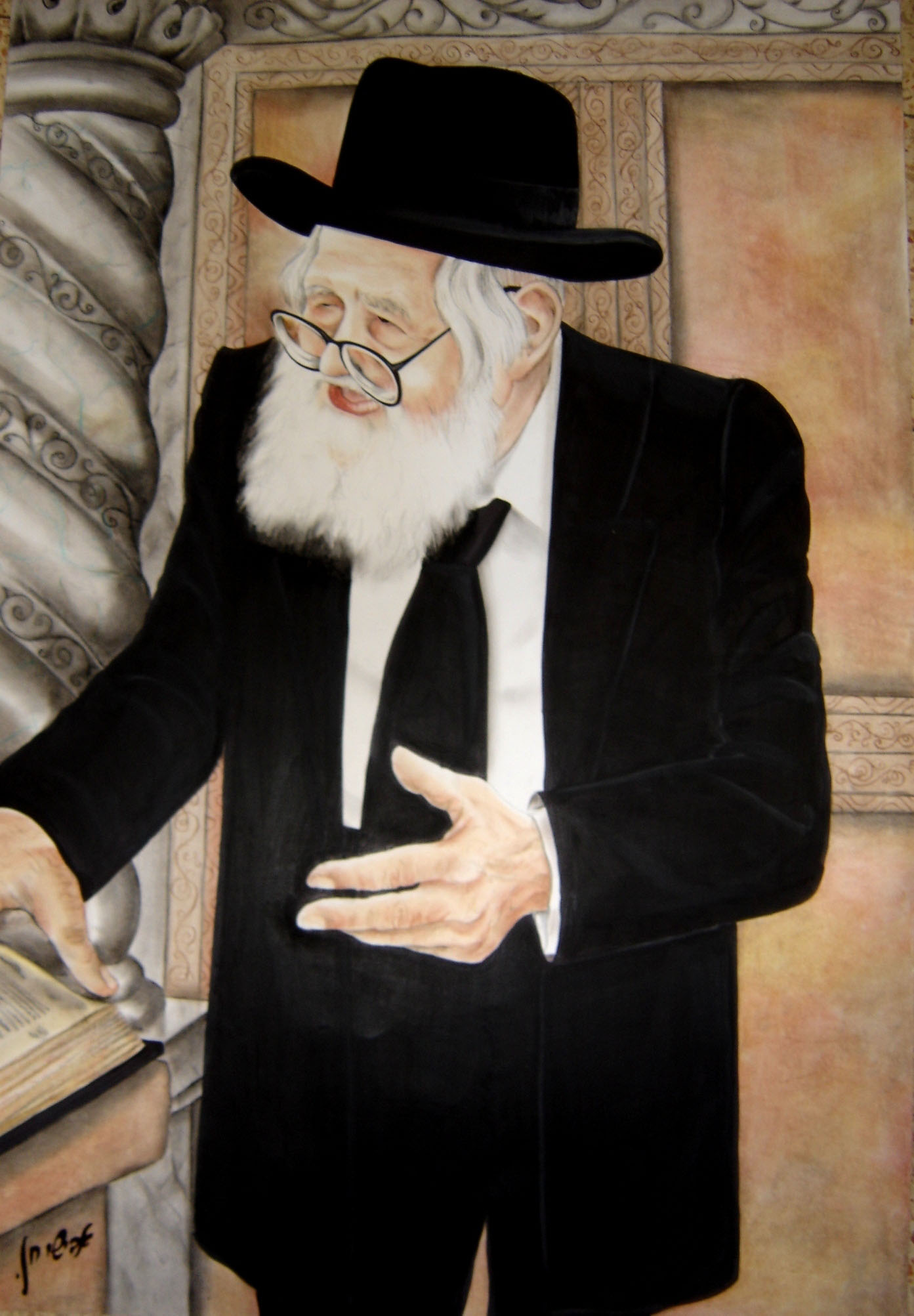 אולי זה לא יאה לציור, אבל כך באמת היו פוזות צילום של הרב שך