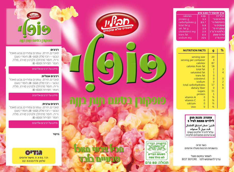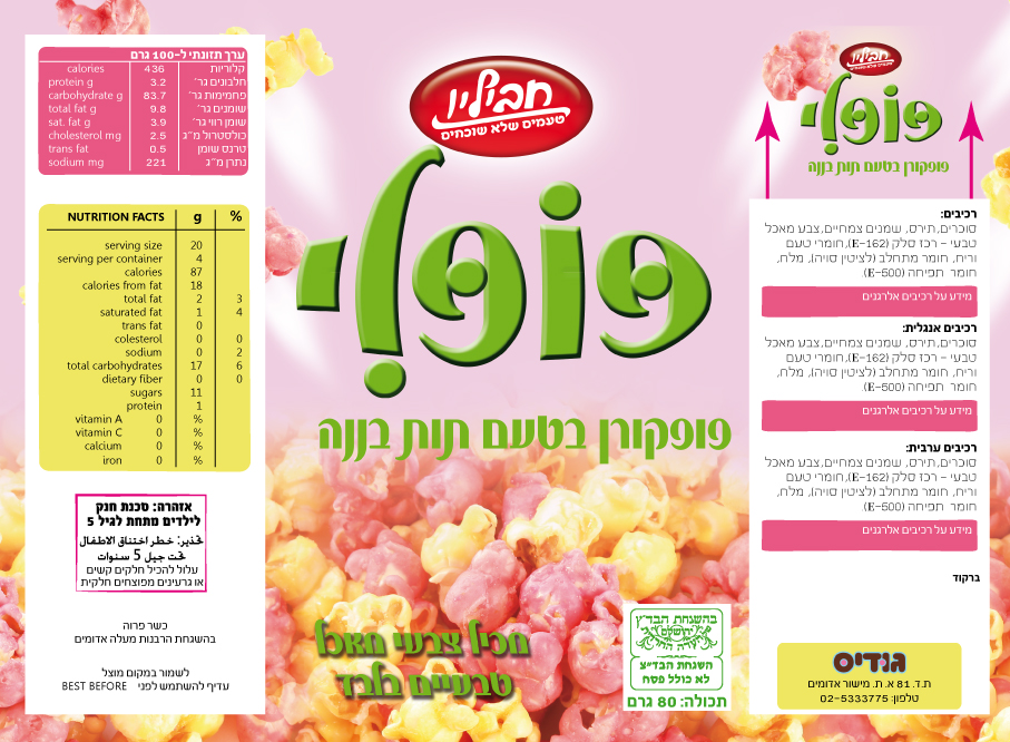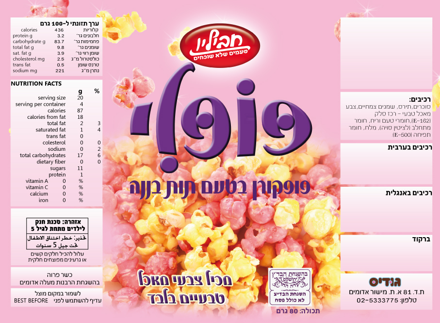 הטקסט ,"פופקורן בטעם תות בננה" לא קריא.