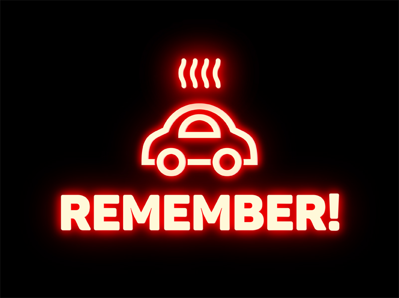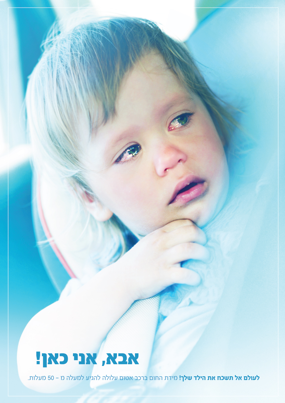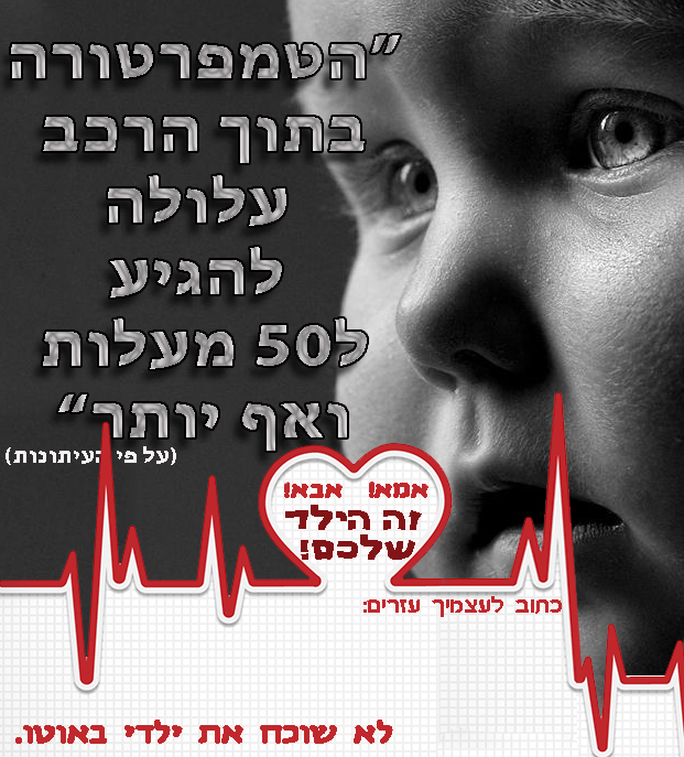 כרזה להגברת מודעות ושימת לב לא להשאיר ילדים ברכב.