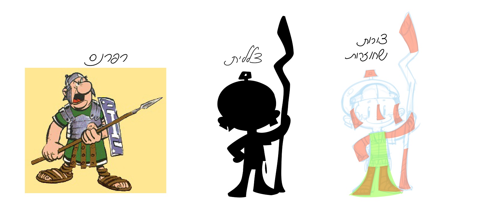 כשמחפשים לעשות דמות חזקה כגון מיקי מאוס, הסימפסונים וכו' יש עניין מאוד חזק בצללית של הדמות. כלומר האם נזהה את הדמות רק מלהביט בצללית שלה, בלי צבע ופרטים פנימיים. הצללית גם מאוד שימושית אם רוצים לבדוק כמה הפוזה של הדמות קריאה.