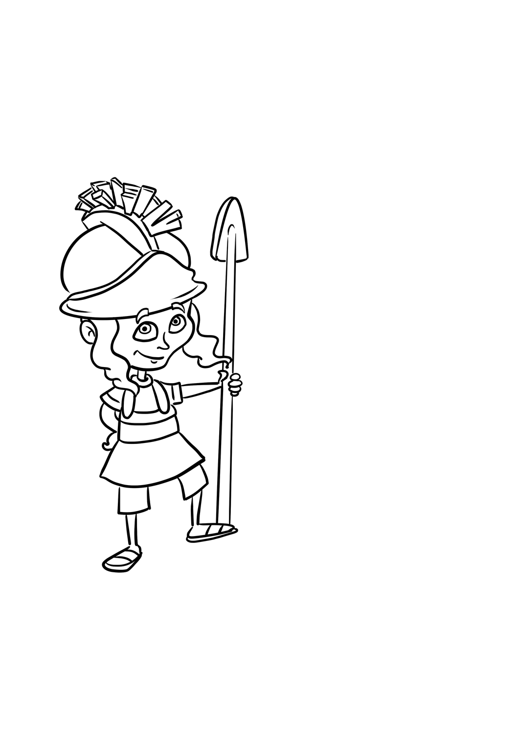 הפיאות המסתלסלות היו מגזריות מדי, וכן ניסיתי לתת עוד יותר יחודיות לדמות ע"י הצרת הגפיים והצוואר הארוך והצר-