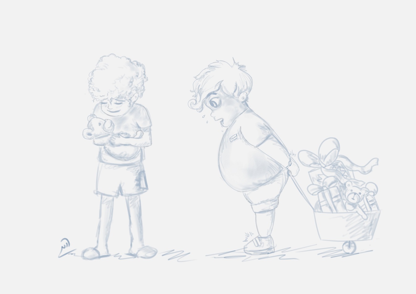 הדרך שבה נוכל להבליט את התכונה היא לצייר דמות שמביעה בדרך כלל ההיפך. זו לא חכמה לצייר הומלס עם מבט מדוכא או פריץ עם התנשאות בעיניים. נסו לעשות את ההיפך. נניח ההומלס הזה כ"כ מאושר שהוא מסתובב עם חיוך כל היום. והפריץ ההוא חומל על נתיניו וכנראה מגזע יהודי.