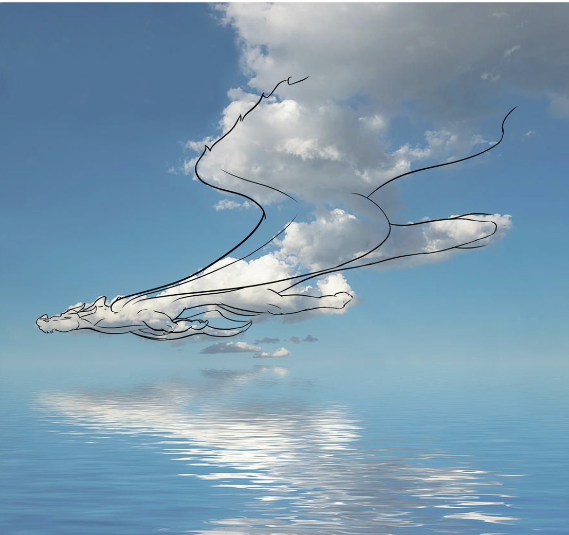 ההשתקפות של הענן על המים נותנת תחושה כאילו הדרקון ממש שם.